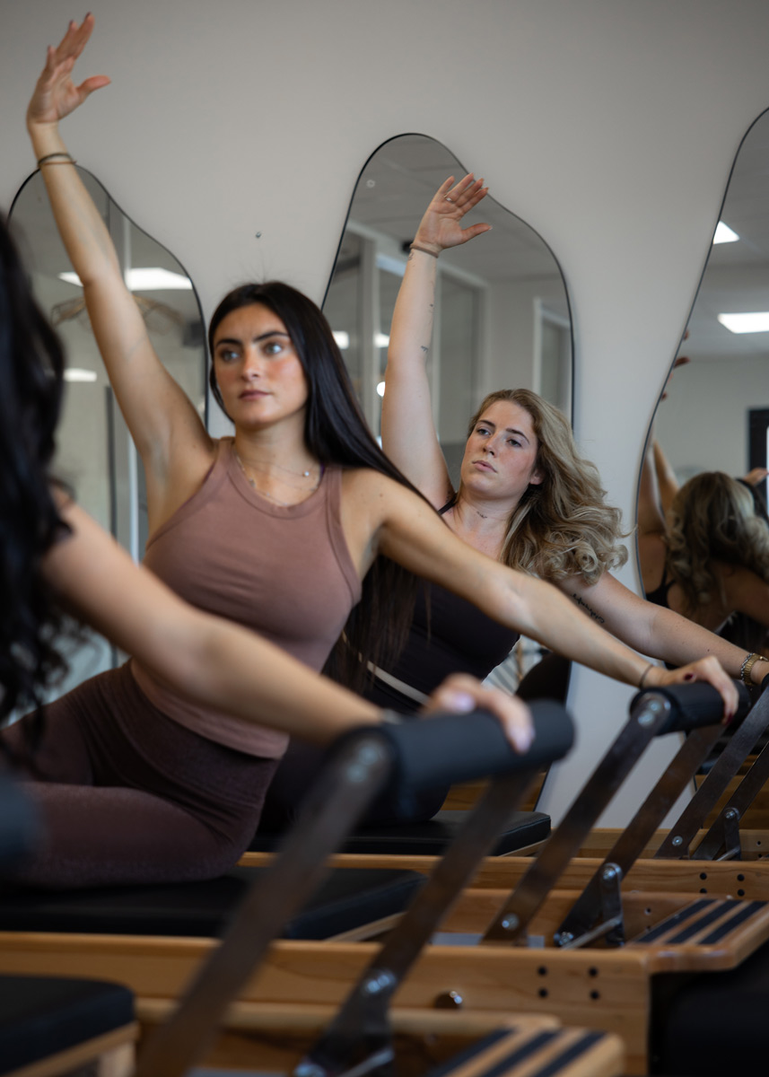 Le Reformer est une machine emblématique du Pilates, qui associe ressorts, sangles et mouvements fluides pour renforcer, allonger et équilibrer le corps.